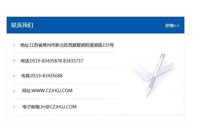 傳真:0519-83435688    郵編:213135    網址:WWW.czjhgj_com.glfjs.com    電子郵箱:JH@czjhgj_com.glfjs.com